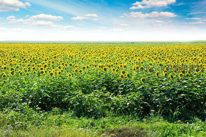 金色向日葵花海在蓝天白云下绽放