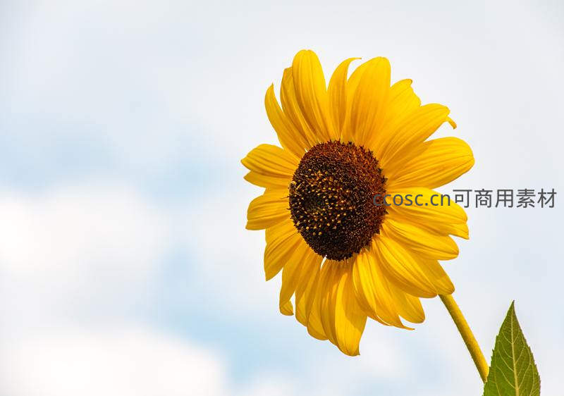 单支向日葵在云朵背景下亭亭玉立