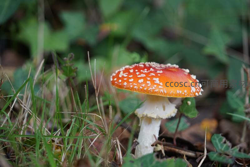 草地上的红白斑点毒蝇伞