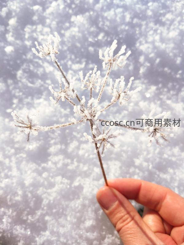 手握霜花枝,晶莹剔透冬日奇景