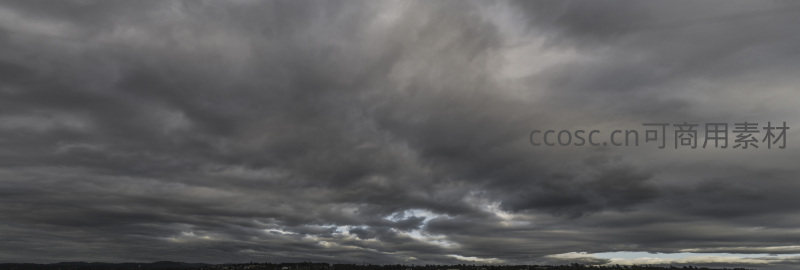 厚重的乌云覆盖整个天空,层次分明,光影交错,营造出压抑而壮观的氛围,地平线隐约可见,预示一场大雨即将降临。