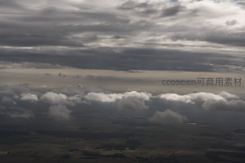 云海之下大地辽阔,高空视角尽览田园风光