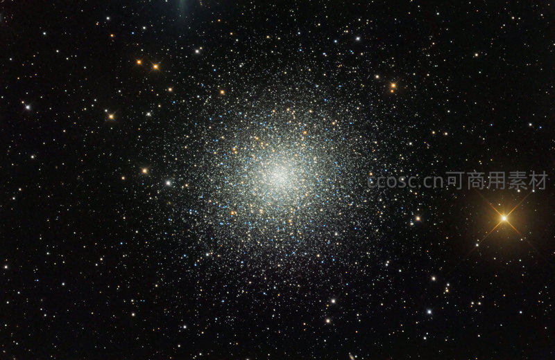 密集的恒星聚集形成一个明亮的球状星团,中心区域光芒四射,周围散布着无数微小星辰,在漆黑宇宙背景下熠熠生辉。