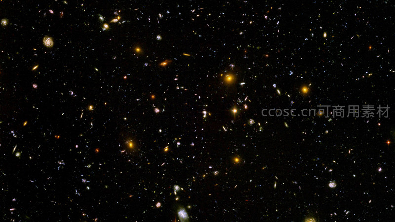 黑暗背景中散布着形态各异的遥远星系,有的呈螺旋状,有的模糊如光斑,共同构成浩瀚宇宙的宏伟图景,引人遐想。