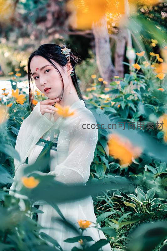 古风女子立花间,温婉如画诗意盎然