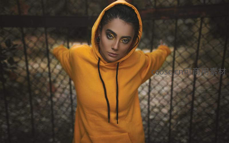 橙色连帽衫少女,街头酷感造型