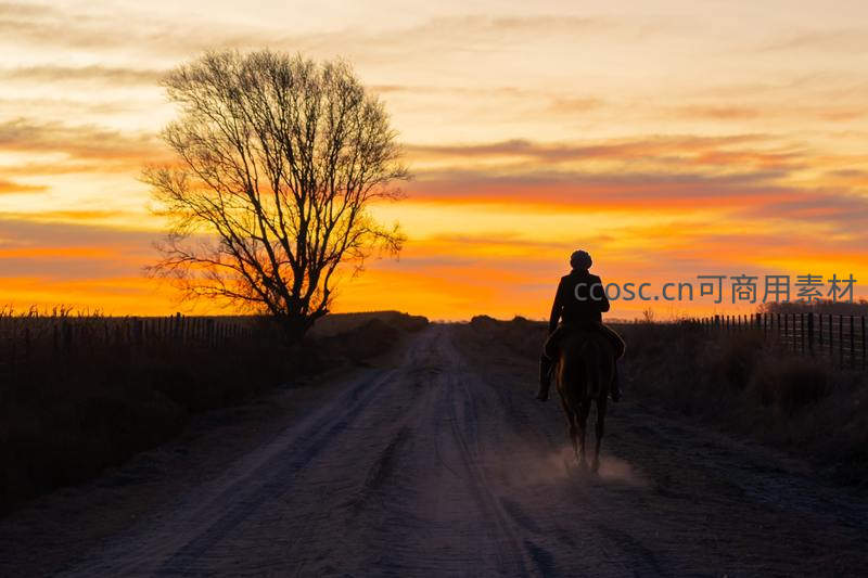 暮色乡间策马归家路