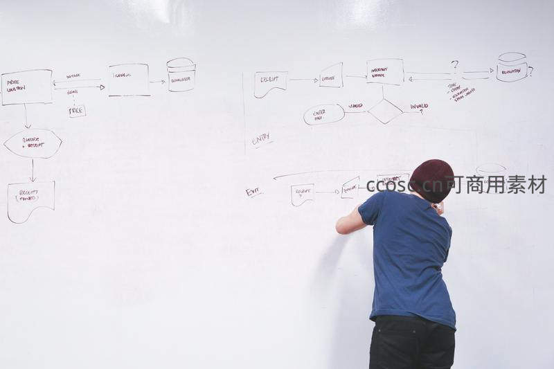 程序员在白板上绘制复杂流程图