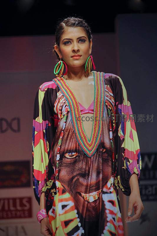 T台上异域风情印花长裙
