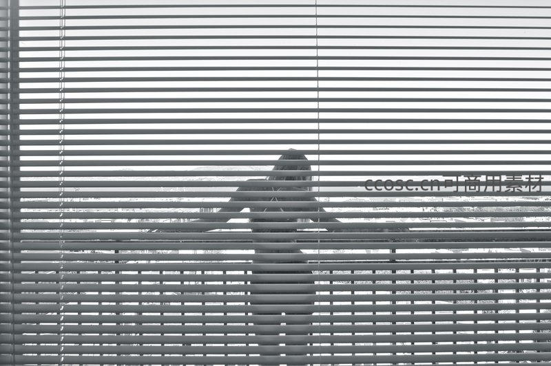 百叶窗后神秘剪影的静谧时刻