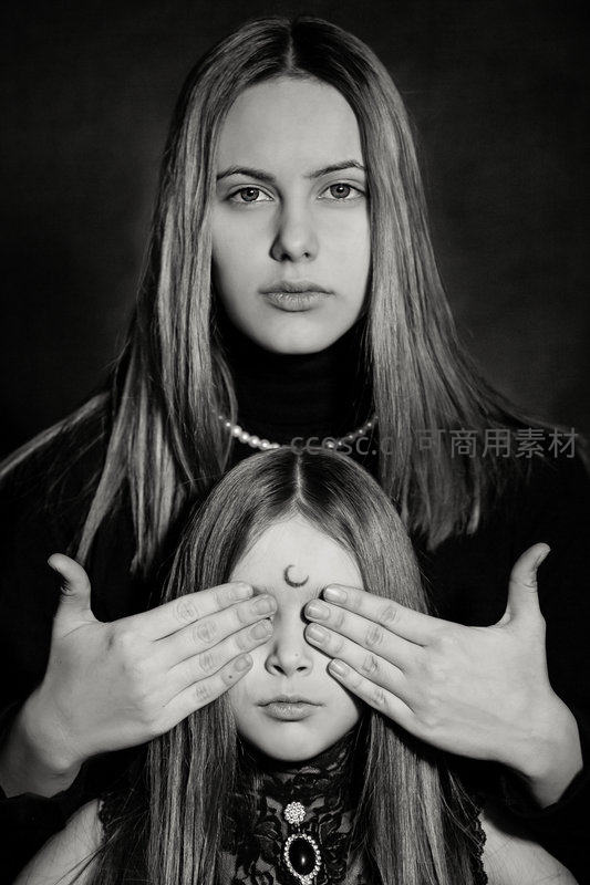 黑白光影下的母女神秘仪式