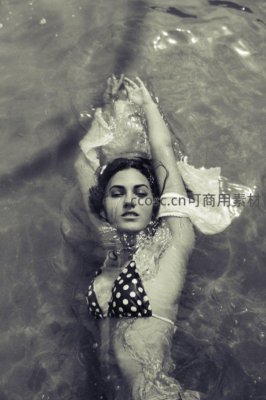 水中漂浮的波点比基尼女郎