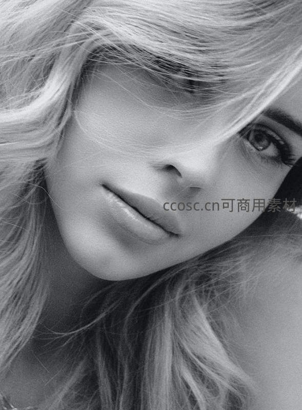 黑白影像捕捉女性侧颜的宁静瞬间,目光深邃,唇角微抿,发丝柔顺垂落,营造出一种内敛而富有艺术感的氛围。