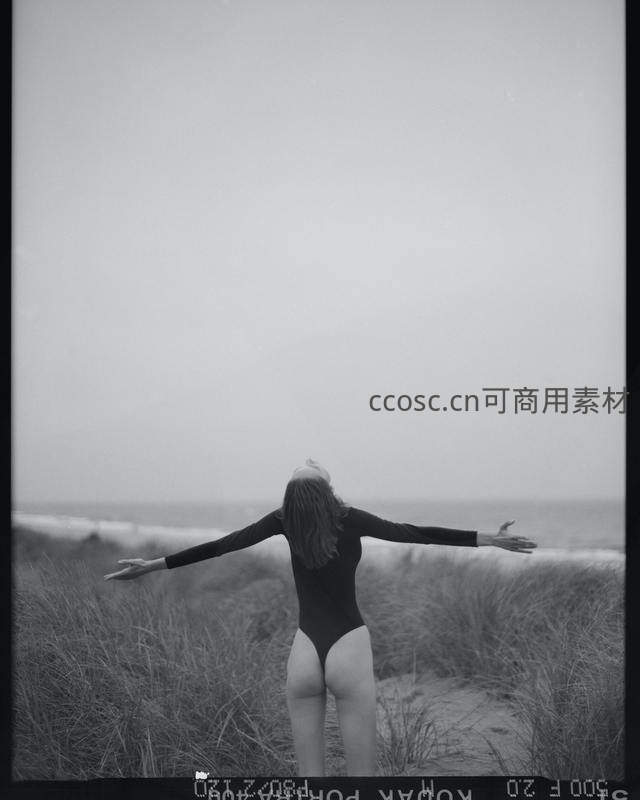 身穿连体性感紧身服在野外双手摊开仰望天空