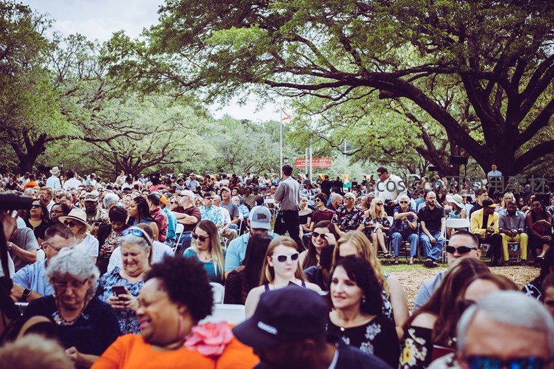 树荫下的人群聚集活动