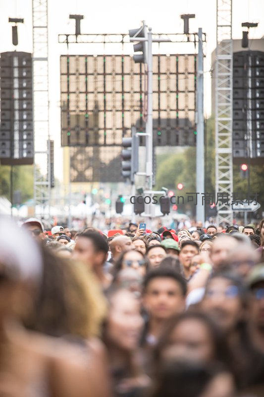 大型户外音乐会,人群密集聚焦舞台前方