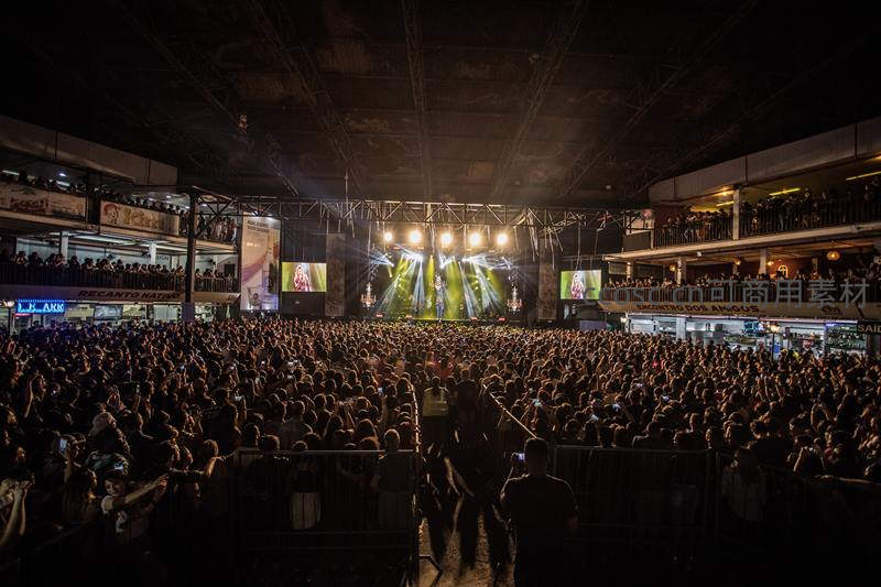 大型室内演唱会观众热情挥舞双手