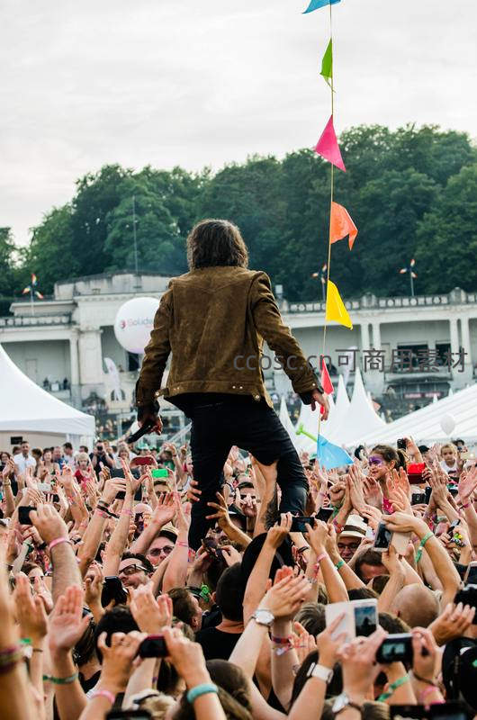 音乐节现场观众托举歌手