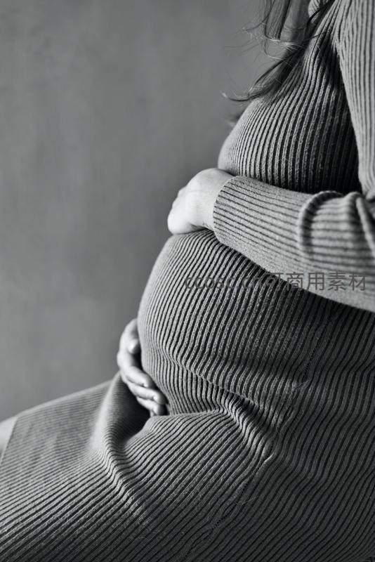黑白特写孕肚展现母爱温柔