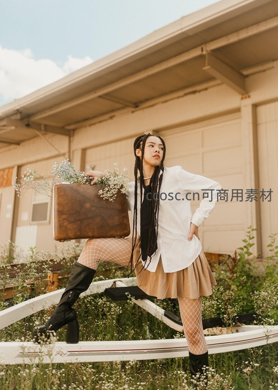 复古手提箱与野花少女