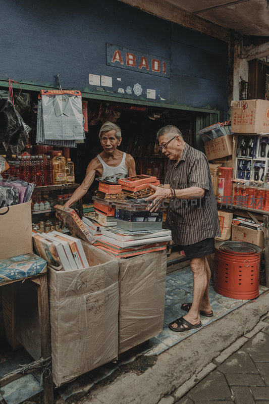 一对年迈夫妇在充满年代感的街边小店中忙碌整理货架,展现了平凡生活中的温情与坚韧。