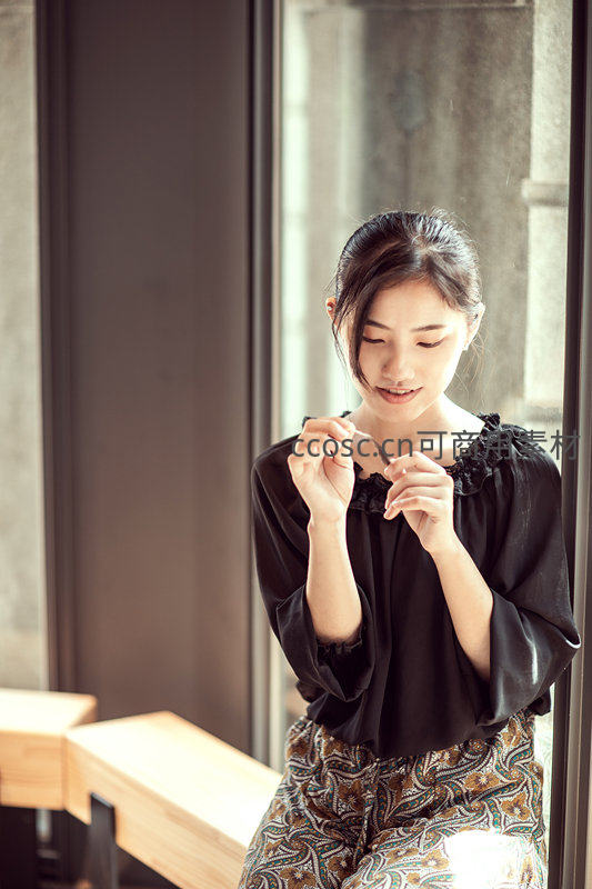 窗边沉思的优雅女子