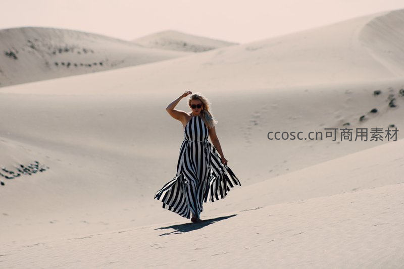 沙漠沙丘之上,条纹长裙飞扬