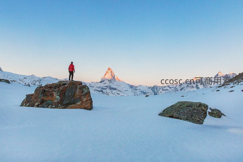 雪山之巅,旅人静观马特洪峰日出