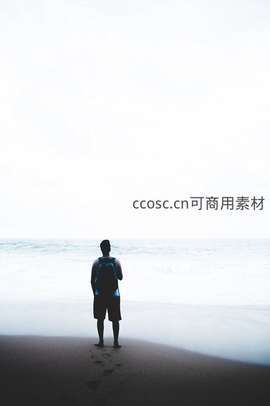 孤影立沙滩,海天一色心自远