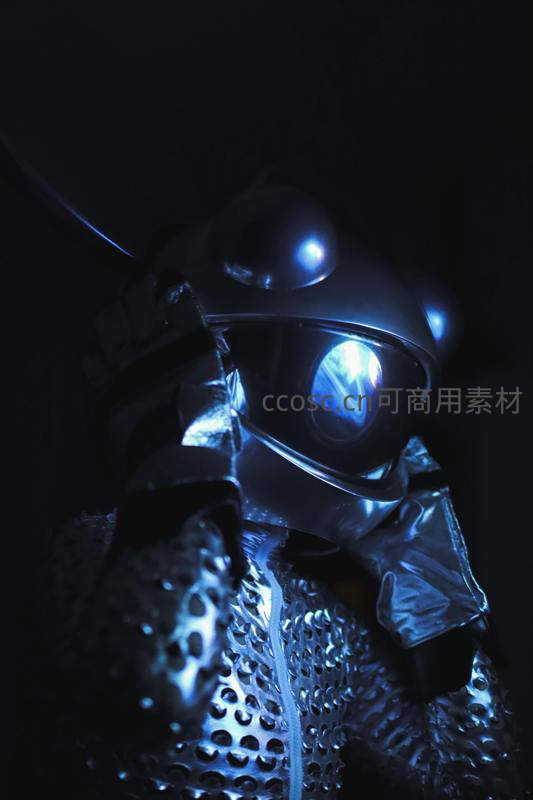 蓝光头盔特写,未来科技感十足