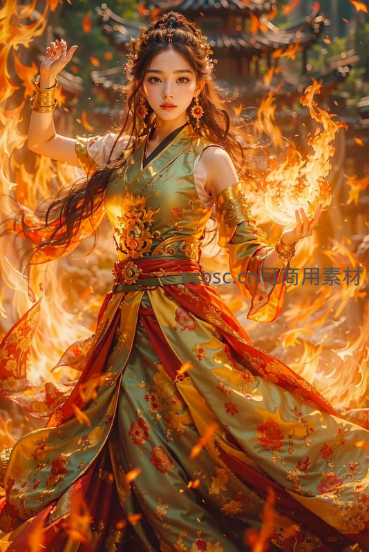 火焰中的古风仙子,衣袂飘飘舞动烈焰