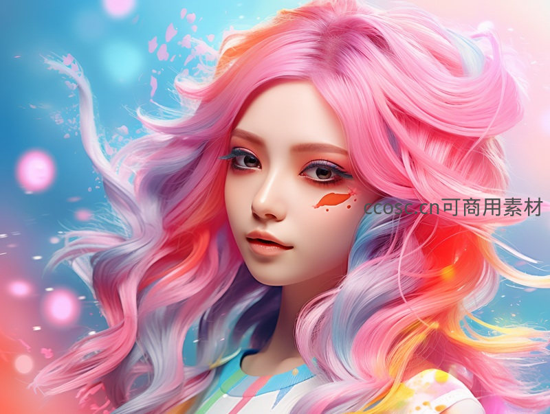 粉彩长发少女飘逸特写