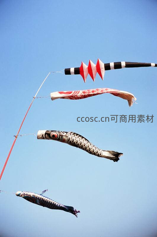 鲤鱼旗迎风舞,蓝天映衬庆佳节