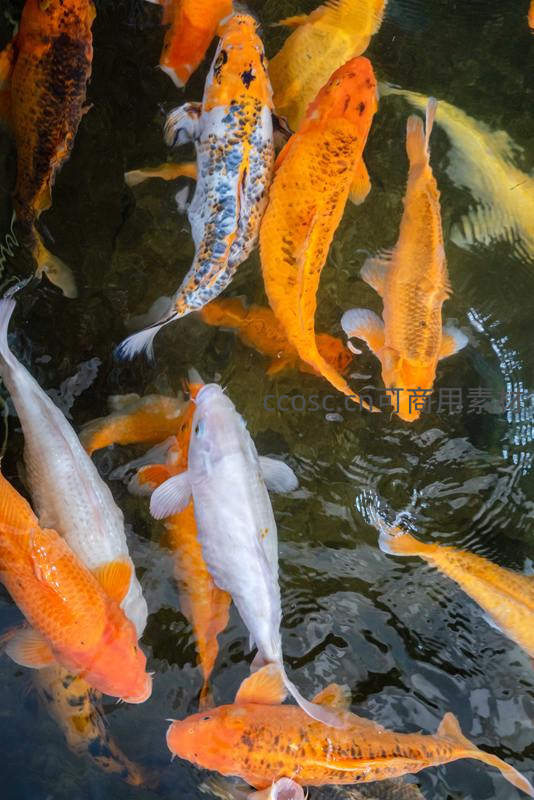 密集锦鲤群聚水面泛起涟漪