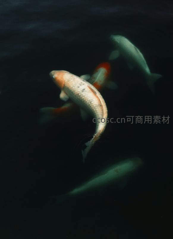 暗影水域中优雅游动的锦鲤