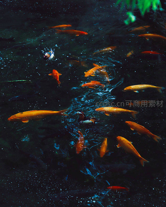 群鲤戏水池中光影斑驳