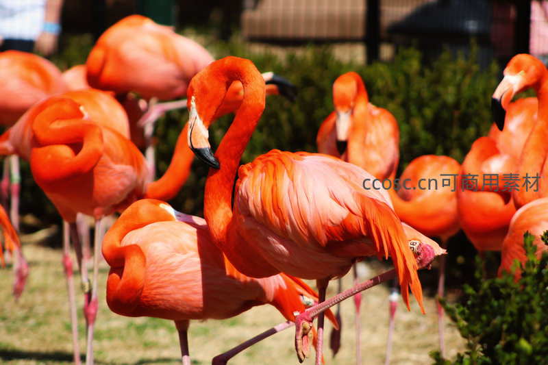 火烈鸟群栖息草地优雅姿态