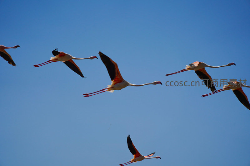 蓝天翱翔的火烈鸟飞行队列