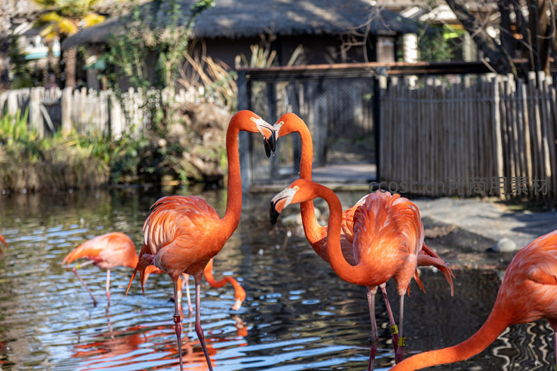 两只火烈鸟在水中将长颈相交,形成一个完美的心形轮廓,周围波光粼粼,传递出自然界的温情与浪漫瞬间。