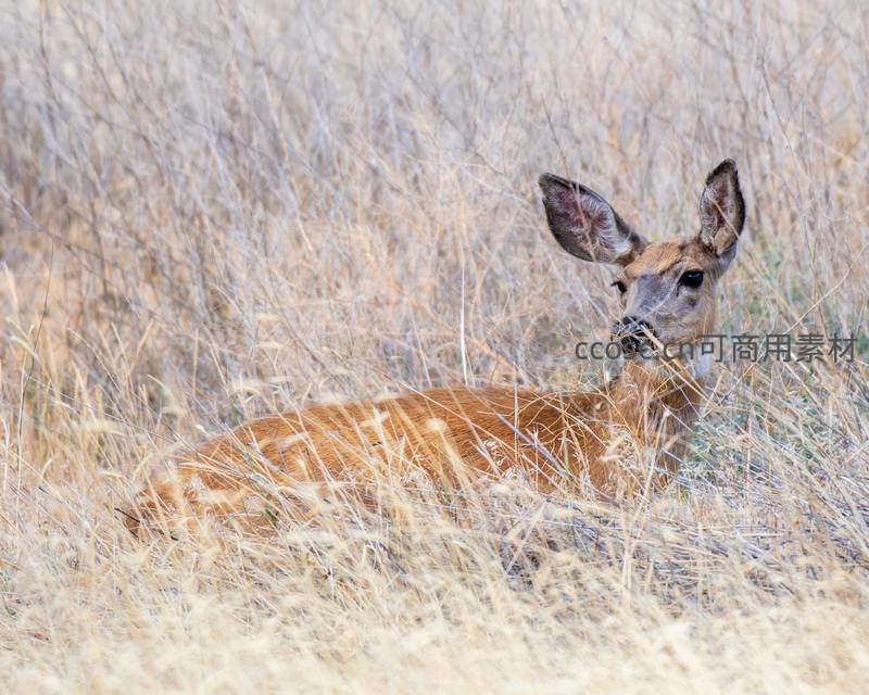 枯草丛中休憩的母鹿,安静而优雅