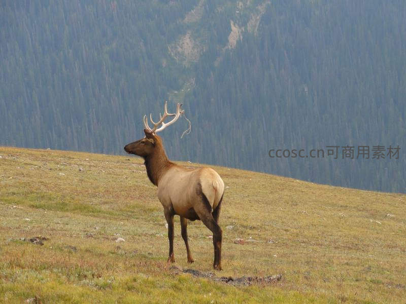 山巅雄鹿昂首眺望苍翠群峰