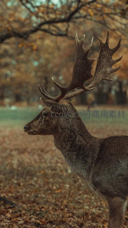 秋日公园里的麋鹿侧影