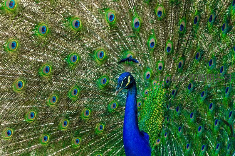 蓝孔雀开屏,羽翼如画展华彩