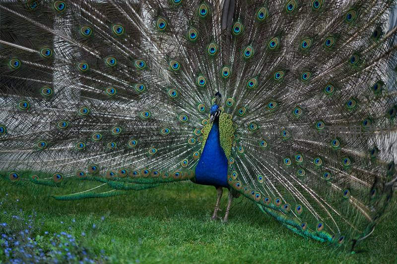 草地上孔雀开屏,如扇形华盖