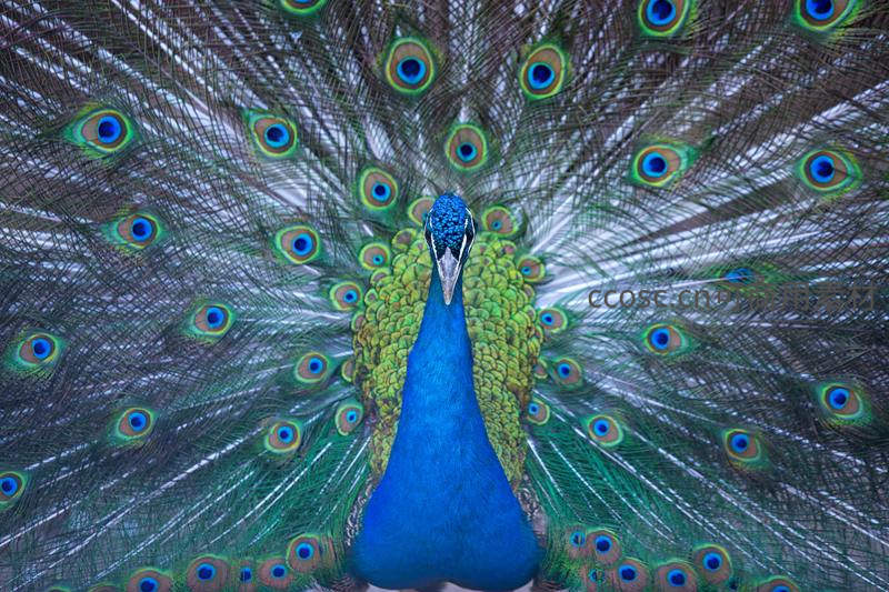 孔雀开屏正对镜头,华美羽扇震撼全场