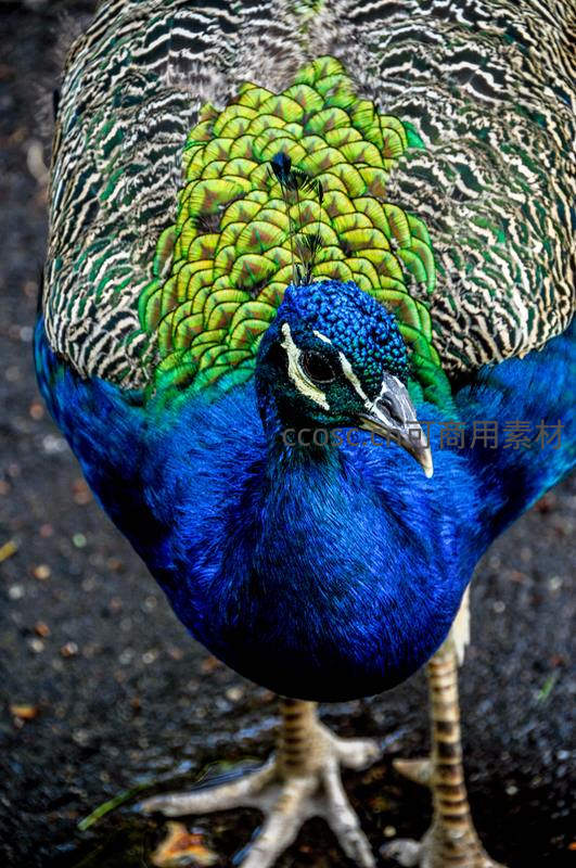 蓝孔雀凝视镜头,眼神锐利威严