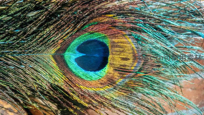 孔雀羽毛眼斑特写,色彩斑斓如宝石