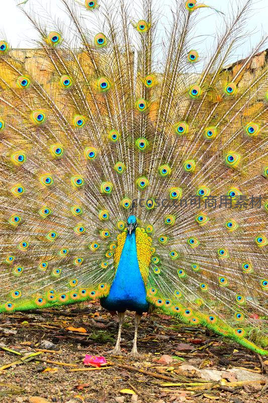 雄孔雀开屏展示,华丽羽扇惊艳全场