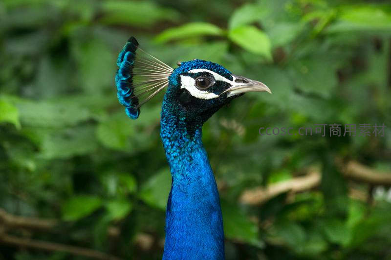 蓝羽孔雀侧颜,冠羽如扇