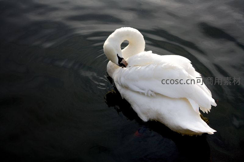白天鹅曲颈理羽水中